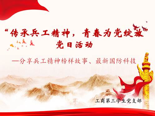 工商第三学生党支部通过钉钉平台视频会议方式开展了“传承兵工精神,青春为党绽放”的主题党日活动,分享学习了兵工榜样故事、最新国防科技。会议由党支部书记王轩主持,工商第三党支部共19人参与了此次学习。