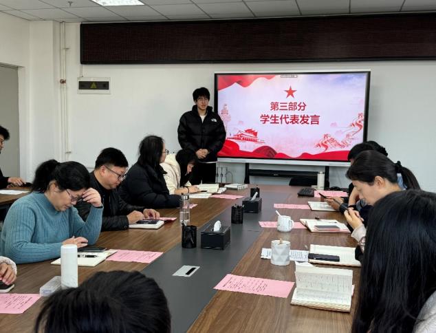 随后,管科第二学生党支部书记崔弘结合当天学习内容与支部实际,围绕支部建设工作进行汇报交流。她讲到,党支部始终将培养大学生党员的思想品质和政治素质置于重要位置,今后要继续对照“一类”基层党组织标准,抬高工作标杆,不断提升组织生活质量和效果。学生党员代表杜金波、陈韬毅分享学习心得与思考。
