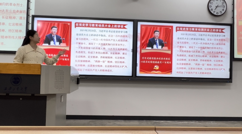 刘奕彤、张蓉、李萌萌等研究生分别以张思德精神、南泥湾精神和改革开放精神为主题,将广大青年学生的梦想融入中国梦,以党的先进思想为理论指导,立志成为国之栋梁。以《将“为人民服务”进行到底——纪念张思德精神》为题,围绕共产主义战士张思德,讲述了张思德精神的由来、内涵与时代价值,结合国情、世情与党情,积极呼吁作为新时代的中国青年,我们要勇敢肩负起时代赋予的重任,投身于筑牢中华民族共同体的伟大奋斗中去,积极践行张思德勇于牺牲、任劳任怨、艰苦奋斗的革命精神,努力在实现中华民族伟大复兴的中国梦的生动实践中放飞青春梦想!以《重温光辉岁月、传承南泥湾精神》为题,分享了延安精神的发源地之一——南泥湾的变化与发展,以及南泥湾精神的形成、内涵和当代价值,在面对世界百年未有之大变局和“两个一百年”奋斗目标历史交汇的关键节点,号召广大同学要继续传承和弘扬南泥湾精神,树立正确的奋斗观,拒绝“躺平”人生,不做“佛系”青年,用勤劳的双手、一流的业绩成就属于自己的精彩人生,让青春在新征程中绽放绚丽之花。以《袁家村集团化的发展之路》为题,讲述改革开放精神,介绍了陕西袁家村的改革之路,在郭裕禄、郭占武等带领下,通过几代人的不懈努力,逐渐脱贫致富,走向袁家村集团化发展,成为陕西农村改革的经典范例。在中国共产党的百年奋斗历程中,中国共产党精神也由生根发芽、茁壮成长,到枝繁叶茂、硕果累累,广大青年既是改革开放的见证者和受益者,也是“将改革开放进行到底”的参与者和贡献者,在改革开放中成长起来的广大青年,要在全面深化改革开放中,书写无愧于时代的壮丽篇章。