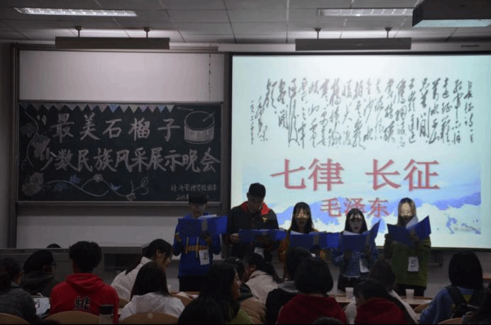 知未研习社于教2-110举办了“最美石榴子”朗诵比赛初赛。与会的嘉宾有知未研习社负责老师侯剑波、院团委副书记马思聪、学生会主席刘倍含及团学组织各部长。成人导航