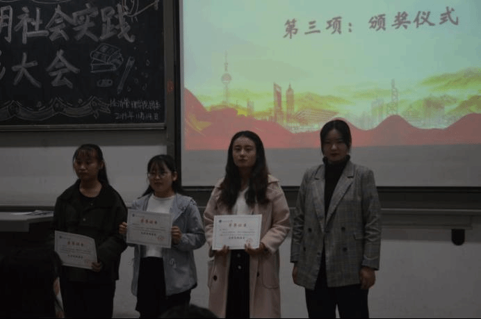 大会伊始,青协部长李素馨对本次社会实践进行总结报告,加深了同学们对社会实践活动的认识与理解。随后,由团委副书记马思聪学姐宣读表彰决定,本次大会重点表彰了院级社会实践优秀团队及个人。并由许金鑫老师和主席团为优秀团体和个人进行了颁奖,对他们的实践精神予以肯定。之后,社会实践优秀团队队长吴依阳、社会实践先进个人代表张晨卓进行了发言。接着大会进行了社会实践优秀DV展示,优秀的摄影作品带同学们领略了社会实践的精神风貌,为大家树立了榜样。大会最后,由许金鑫老师做了社会实践活动的总结,对获奖的个人和团队予以肯定,希望经济管理成人导航 社会实践活动愈加丰富,希望更多的同学积极、认真地参与到暑期社会实践中,书写自己的实践故事。
