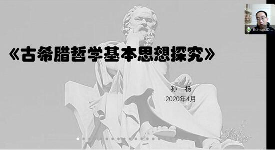 特邀请校党委组织部孙杨以“古希腊哲学基本思想探究”为题,通过腾讯会议在线为成人导航