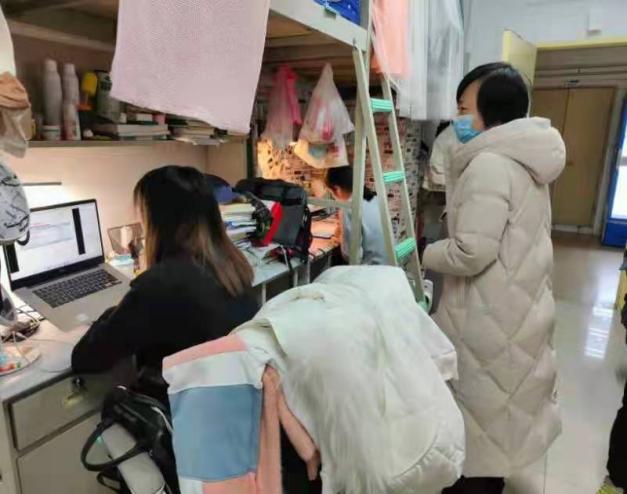 走访期间,王育晓与同学们亲切的交谈,仔细询问了同学们线上上课的情况,听取了同学们对线上上课的感受,对同学们上课遇到的困难和疑惑进行了解答,详细了解了学生上网课的状态、网络流畅性、教师上课质量、网课学习成效等问题。王育晓跟同学们强调不能因为线上教学而放松对个人的学习要求,要妥善安排好时间,养成良好的生活作息习惯,调整学习状态。她嘱咐同学们要适应线上上课的学习模式,认真学习,加强专业知识的学习和专业素质的培养。
