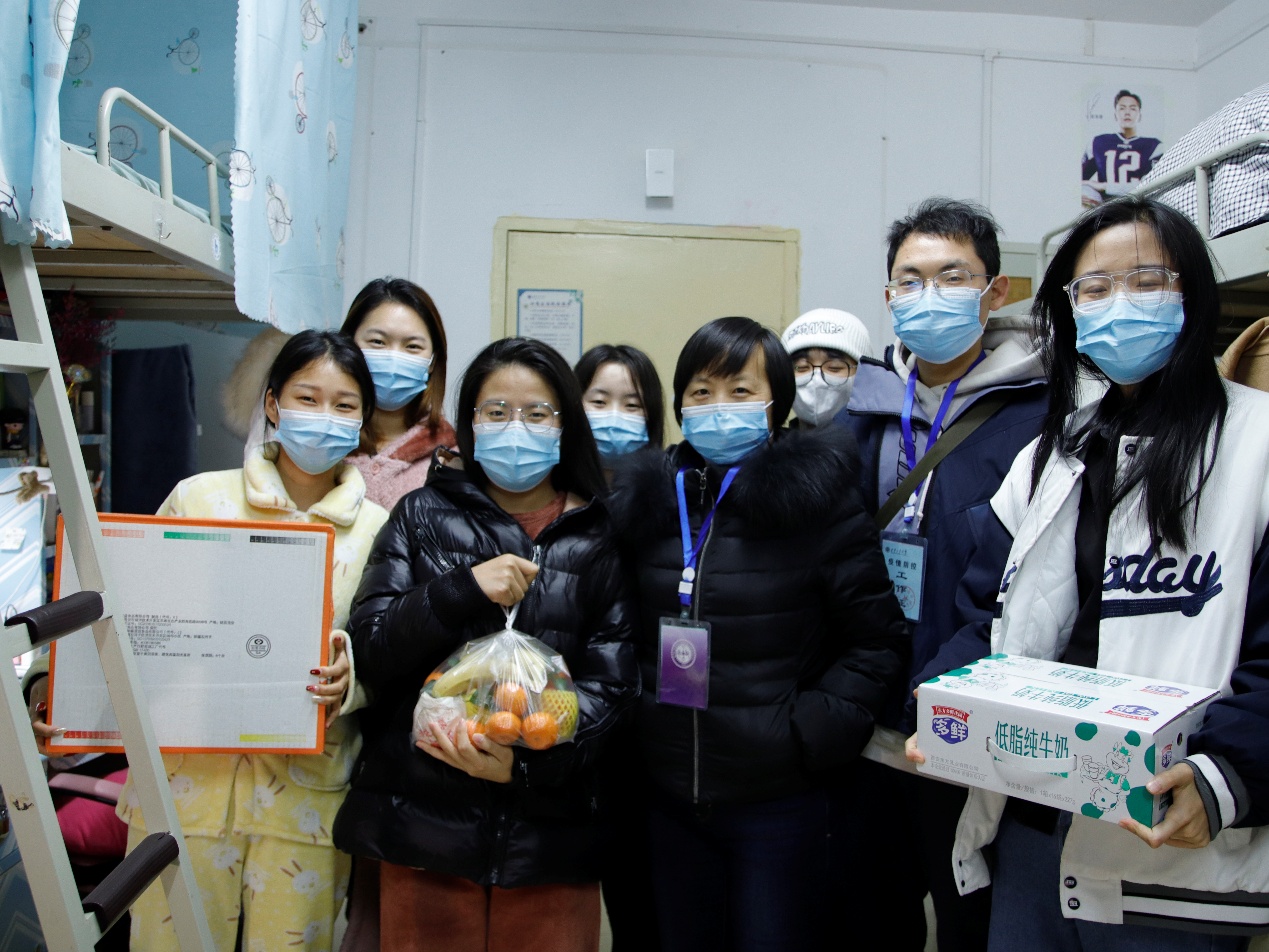 学工队伍在王育晓副书记的带领下,对获奖学生进行了颁奖,“齐心抗疫庆元旦”系列活动完美收官。
