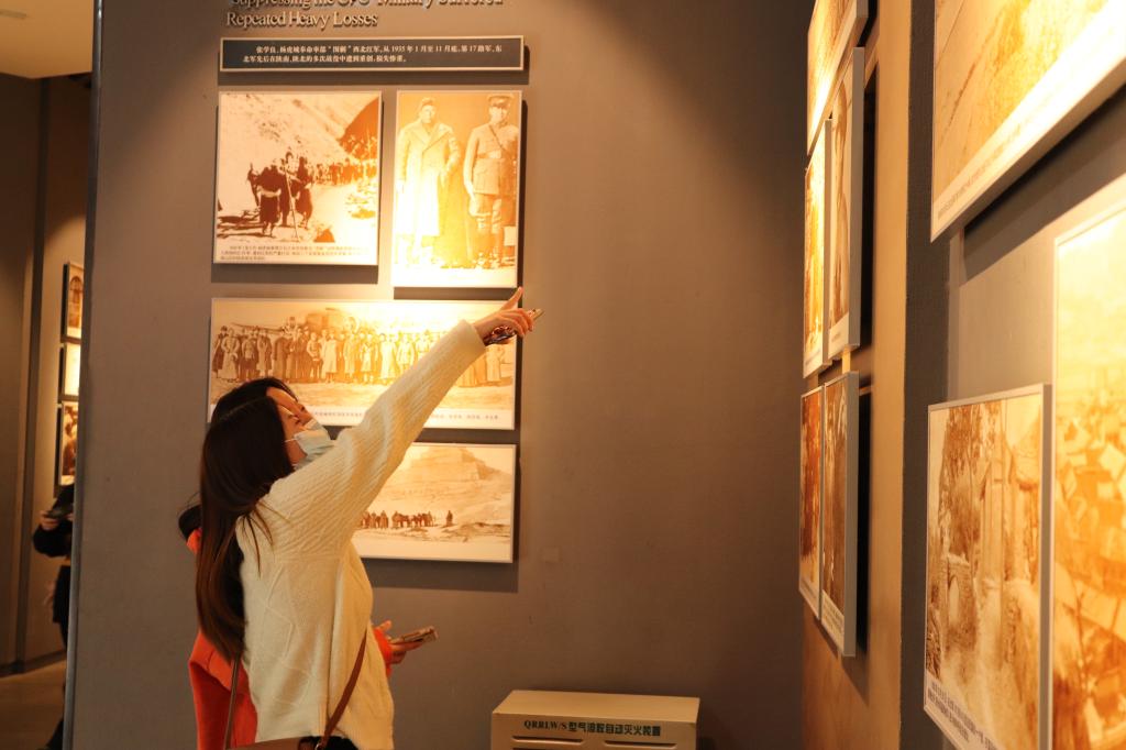 随后的参观学习中,全体成员观看了西安事变的照片、实物,更加直观和深刻地了解和认识西安事变发生的起因、经过、结果。展柜里陈列的真实且珍贵的历史瞬间,冲击着每一位同学的心灵。站在建党百年开启新征程的历史起点上学习党史,从中体会革命道路的曲折和胜利的来之不易,感受革命先烈崇高的精神境界和理想追求,坚定了同学们永远跟党走的理想信念,也让同学们鼓起迈进新征程、奋进新时代的精气神。进入主展厅,顶部悬挂着“停止内战,联共抗日”的横幅,耳边仿佛也响起了当年爱国革命人士们呐喊着的口号、眼前浮现了张学良和杨虎城将军为了联共抗日事业努力的场景。