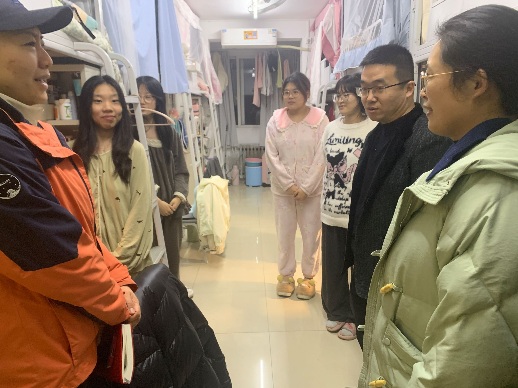部分辅导员,深入学生公寓开展宿舍安全卫生检查工作。