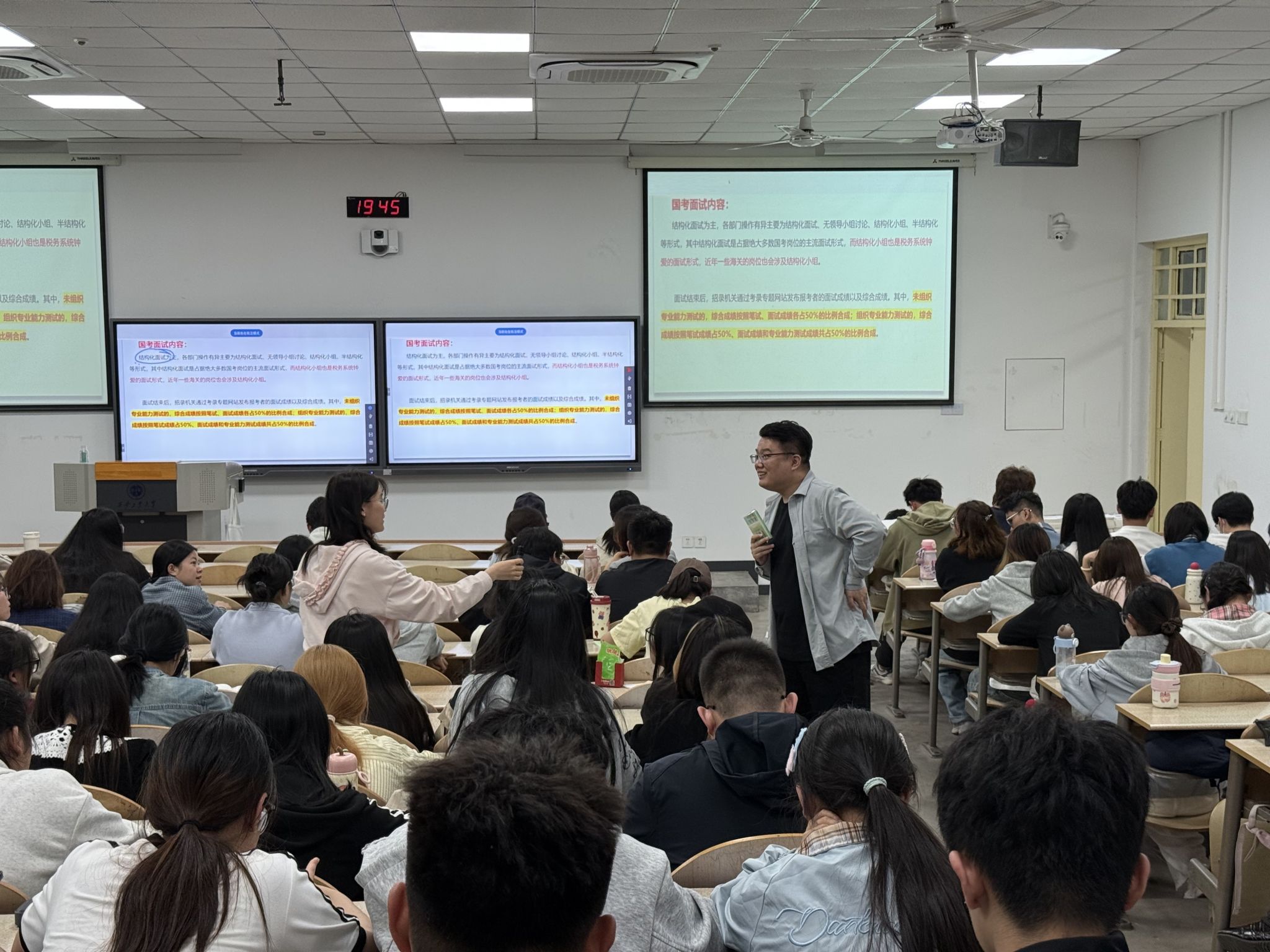互动环节,同学们结合自身备考需求踊跃提问,围绕专业适配岗位、应届生身份利用、零基础备考等问题进行了咨询交流。杨老师逐一耐心解答,结合经管类专业特点给出针对性建议,现场氛围热烈。